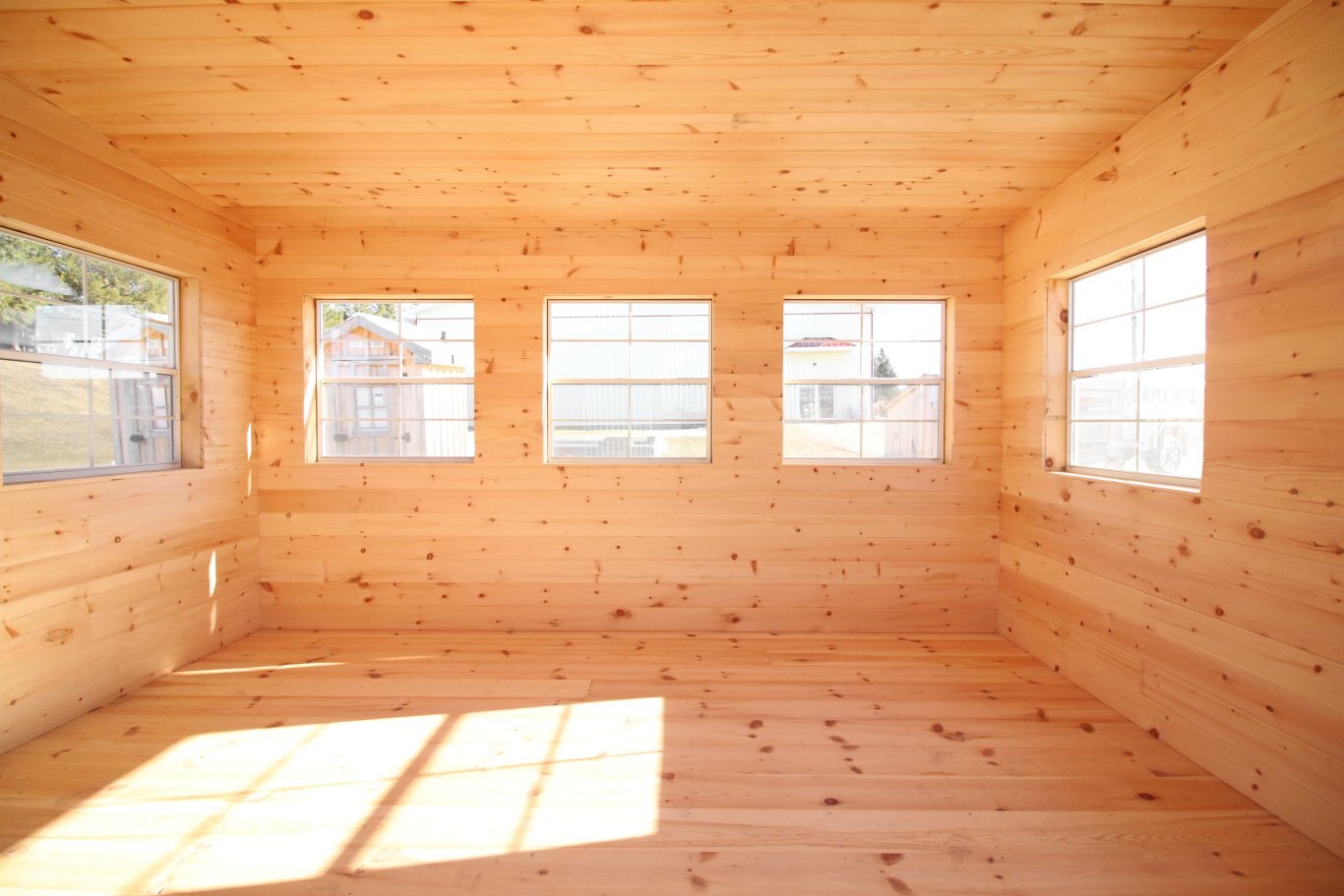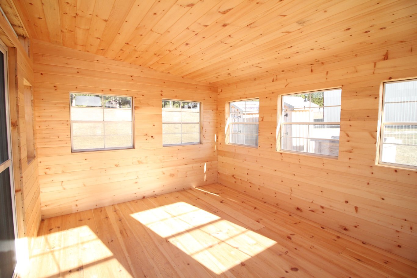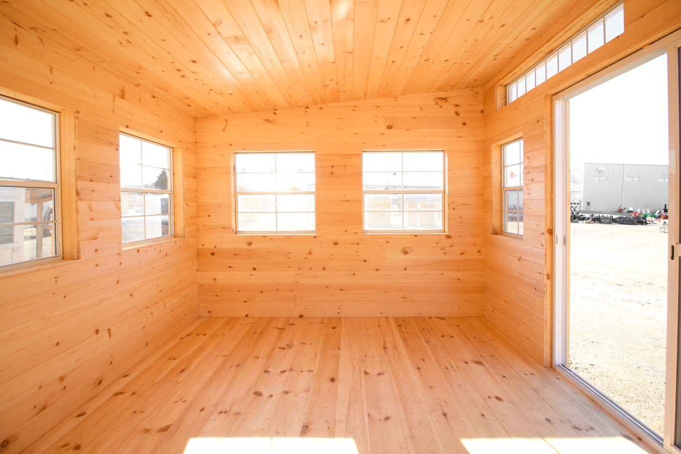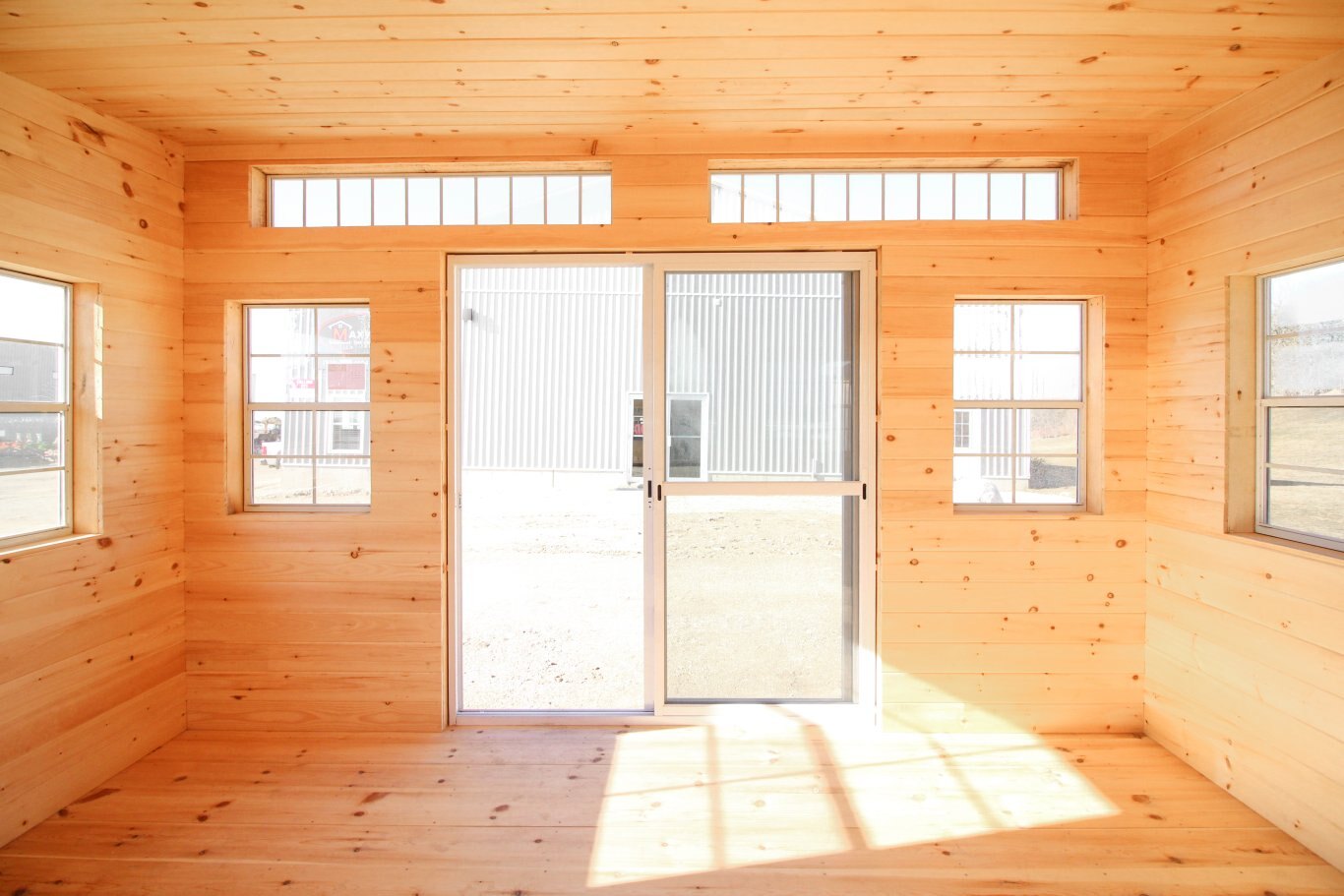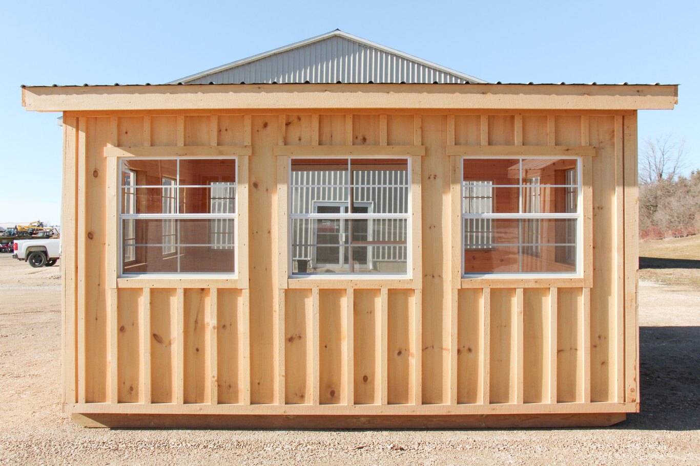 Seven 36" x 36" white aluminum windows with screens (2 Left, 2 Right, 3 Back)