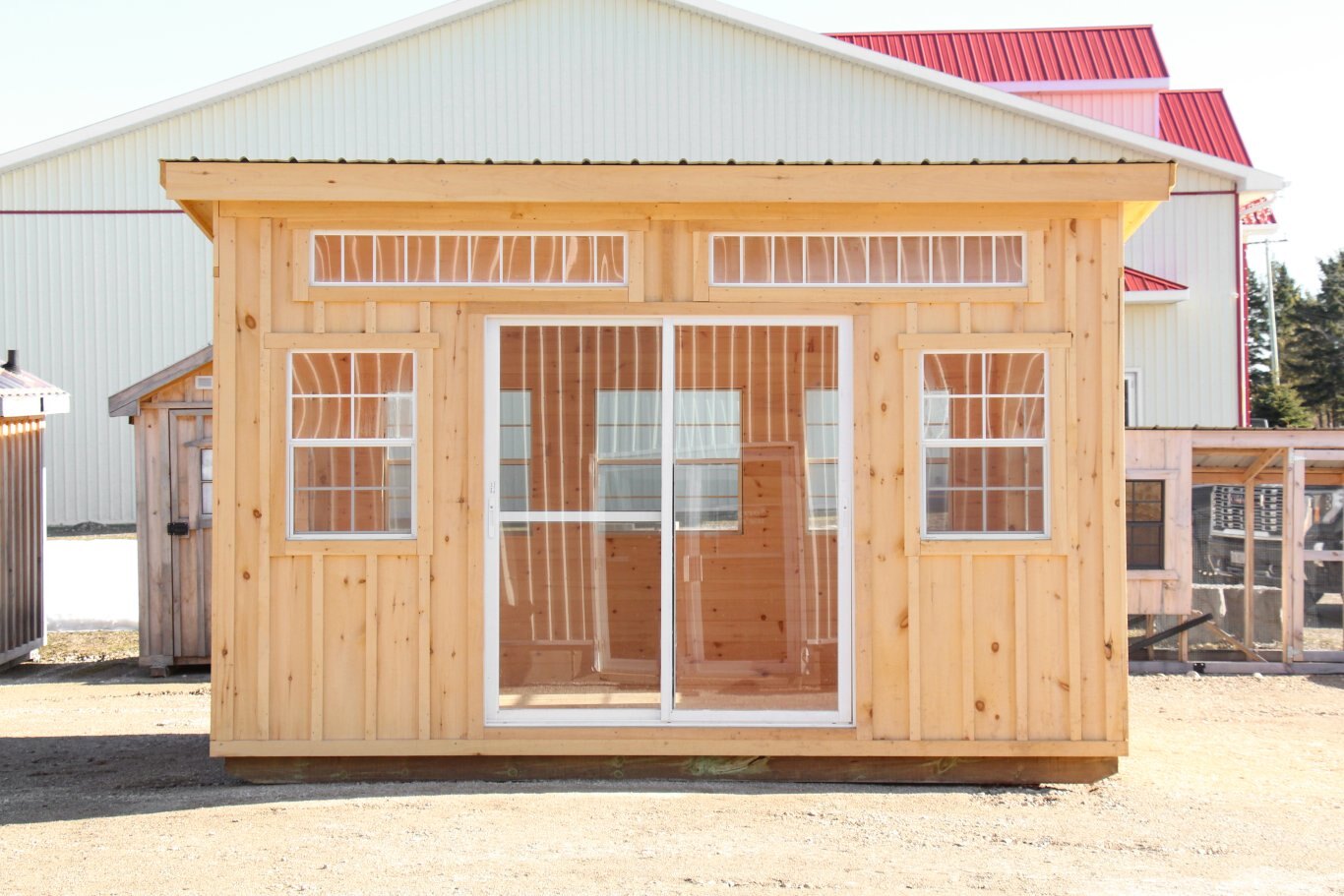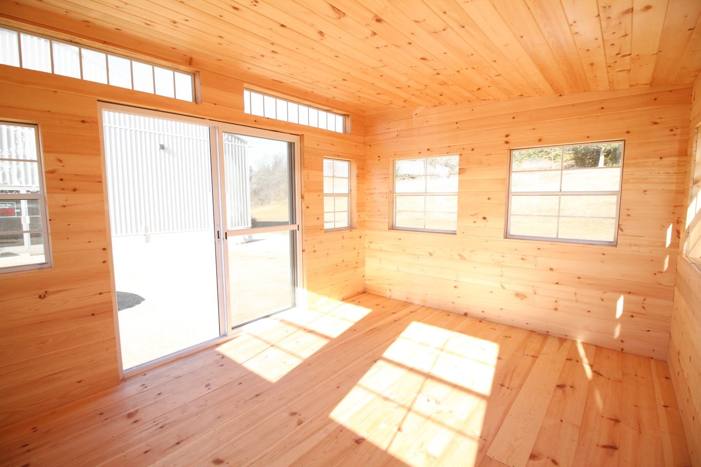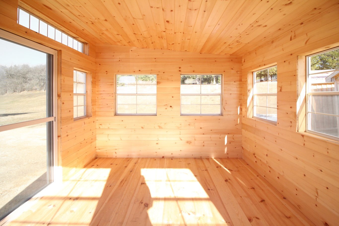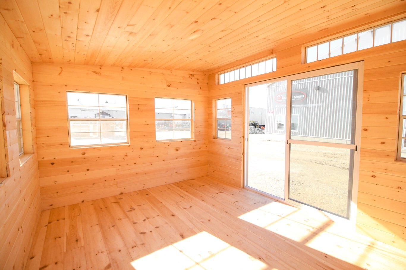 Seven 36" x 36" white aluminum windows with screens (2 Left, 2 Right, 3 Back)