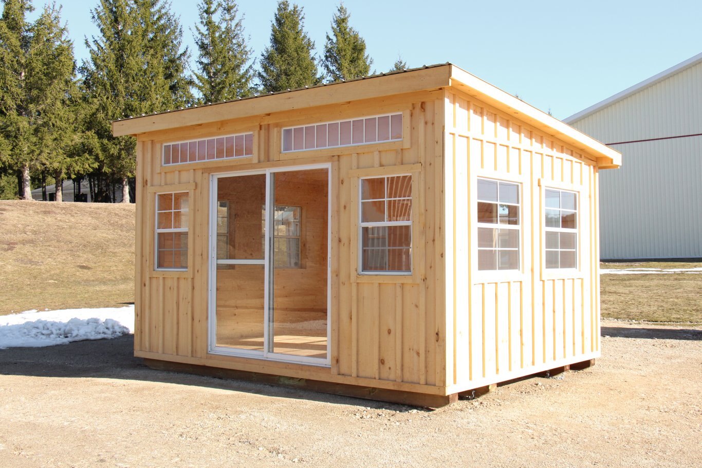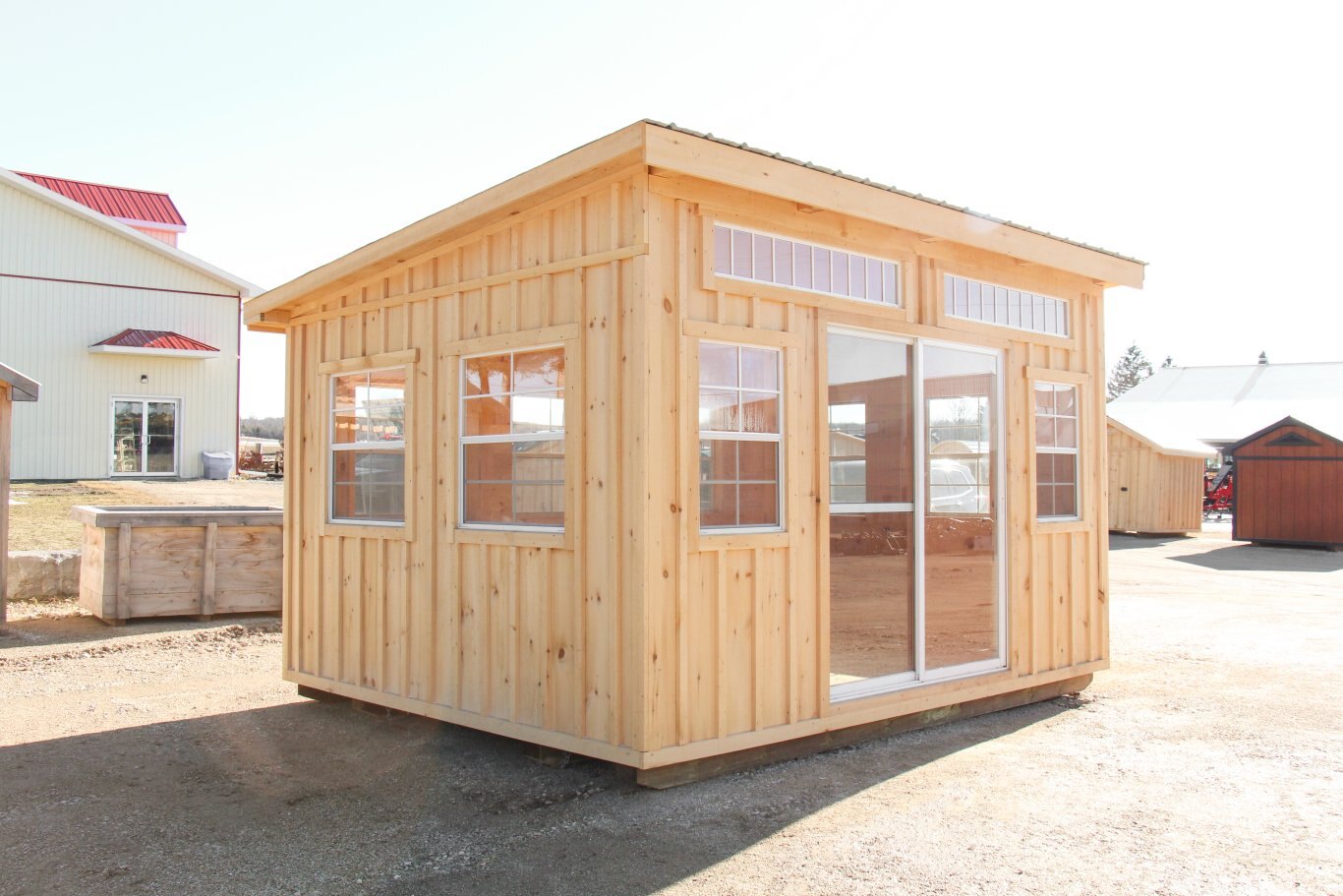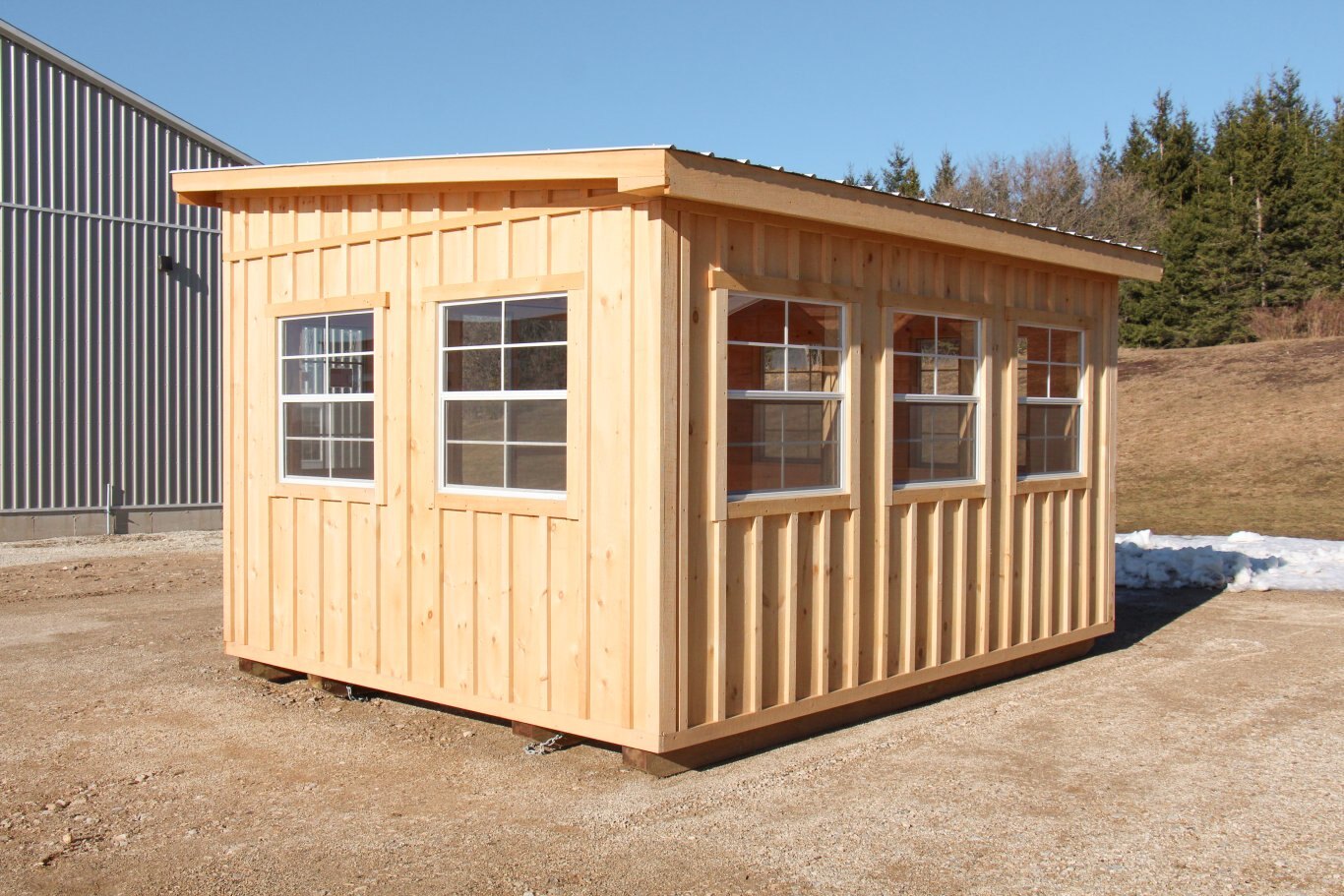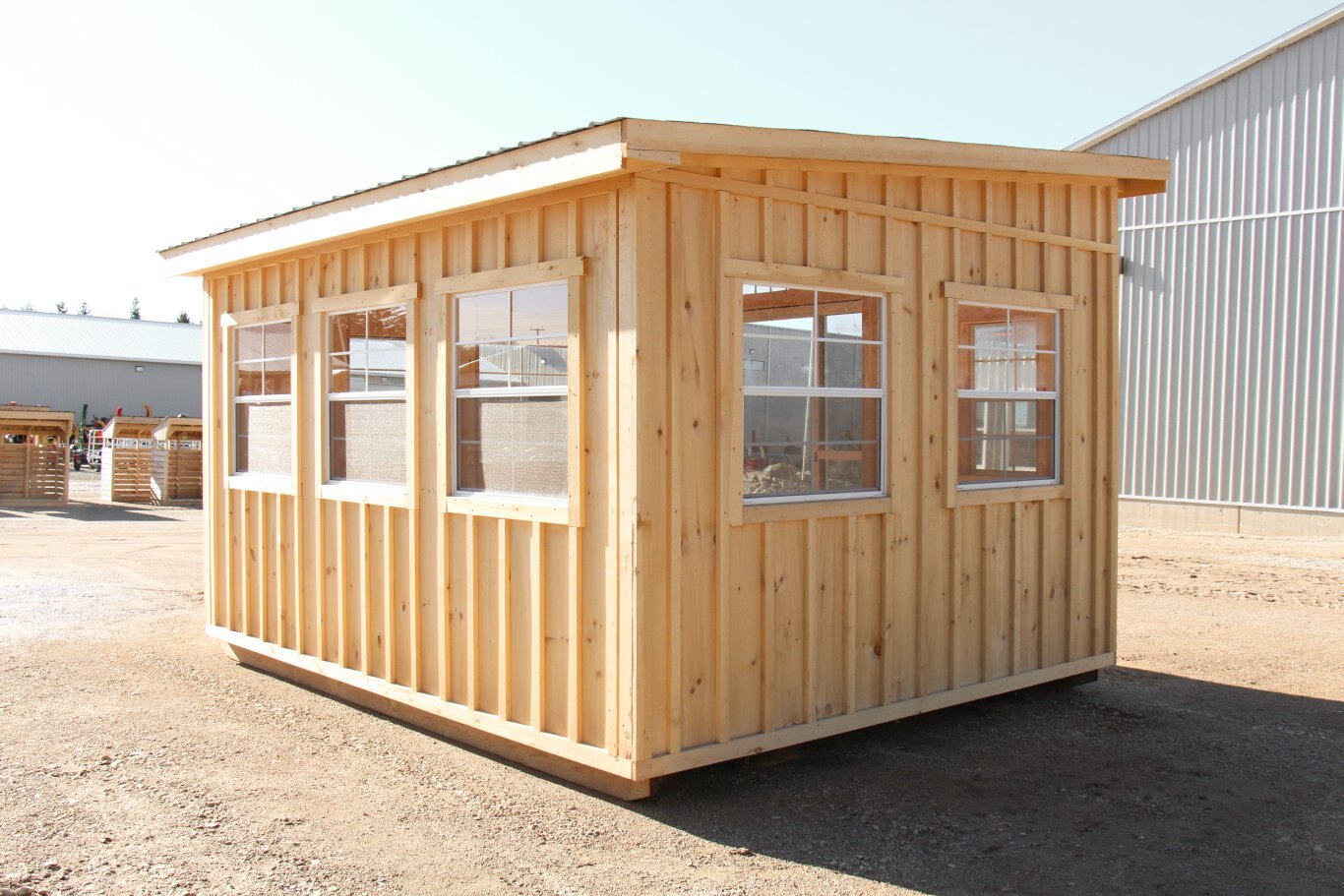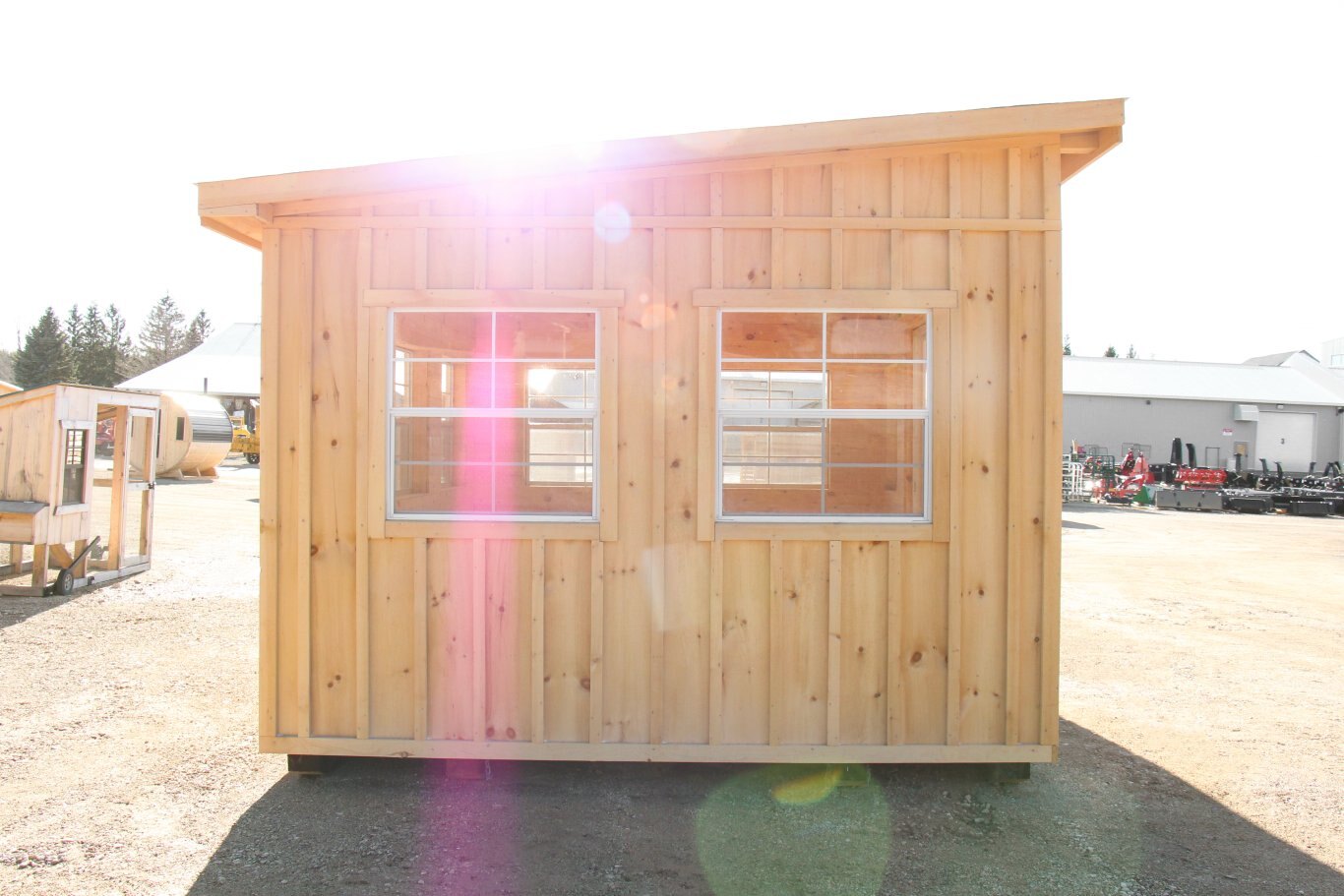 Seven 36" x 36" white aluminum windows with screens (2 Left, 2 Right, 3 Back)
