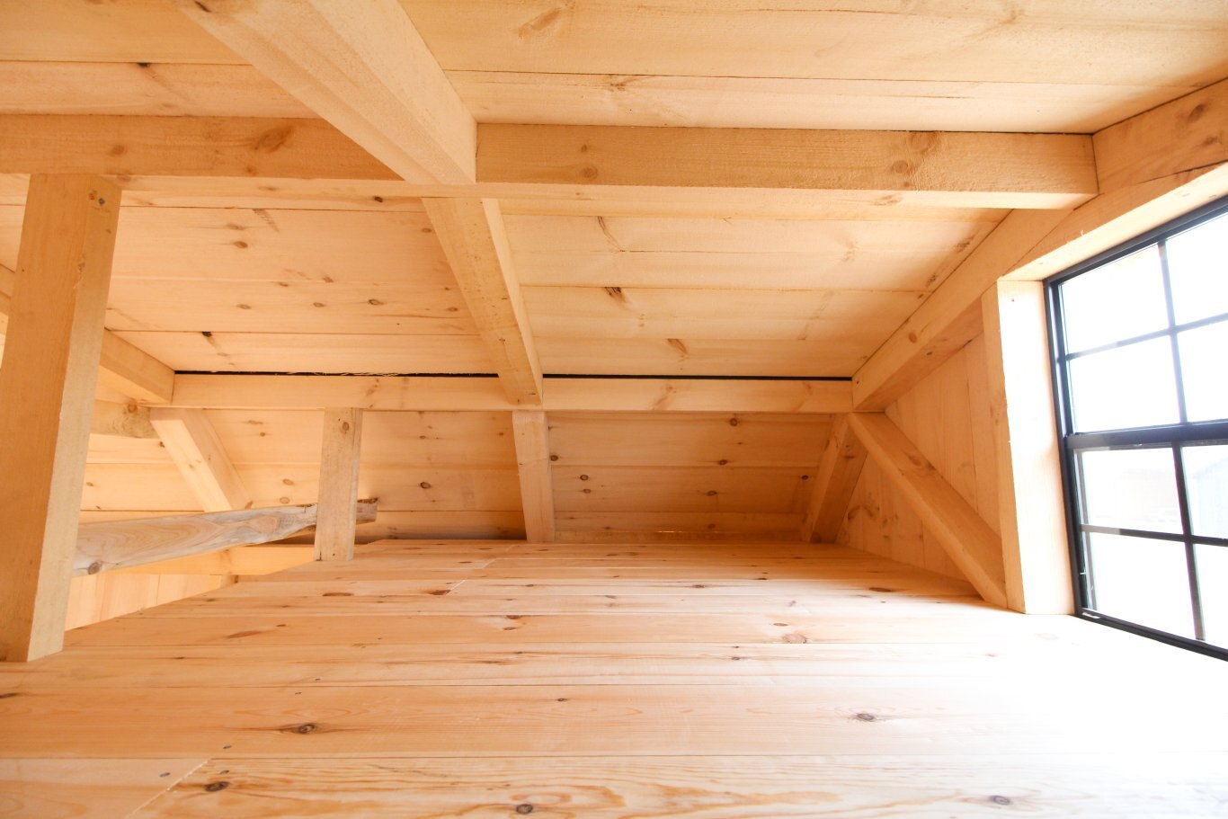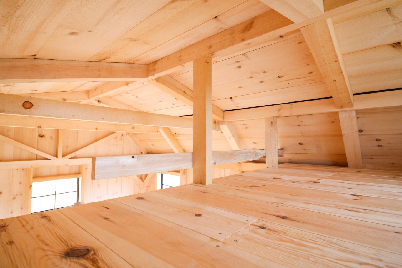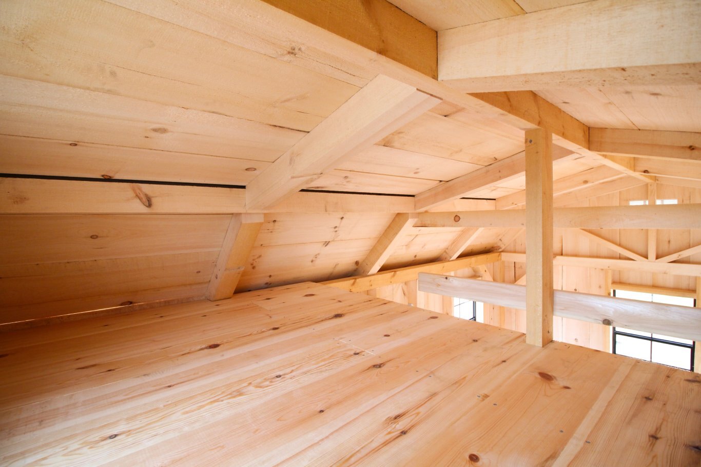 Ceiling lined in rough-sawn pine