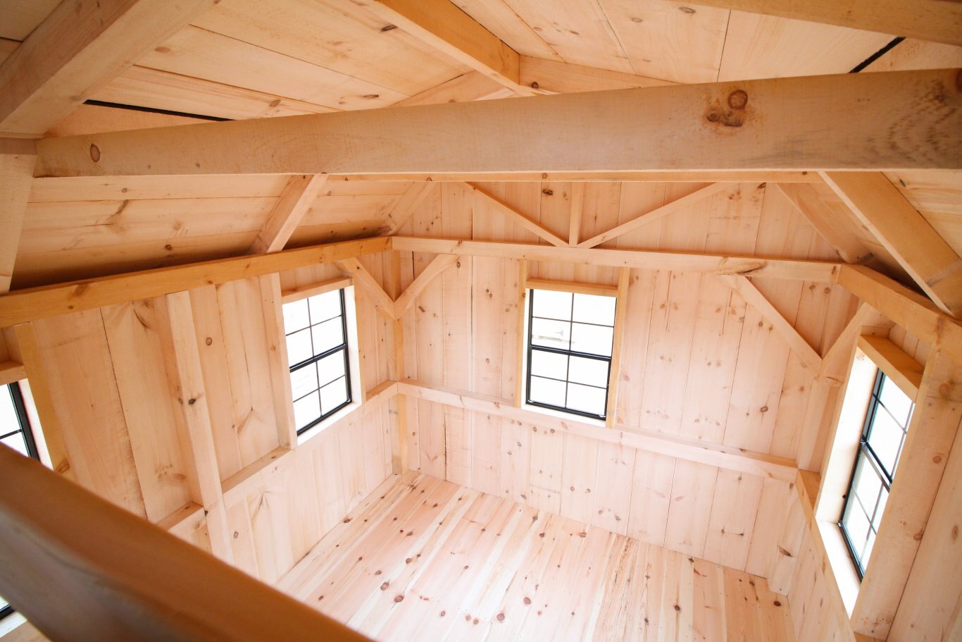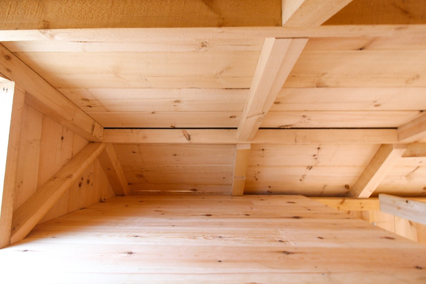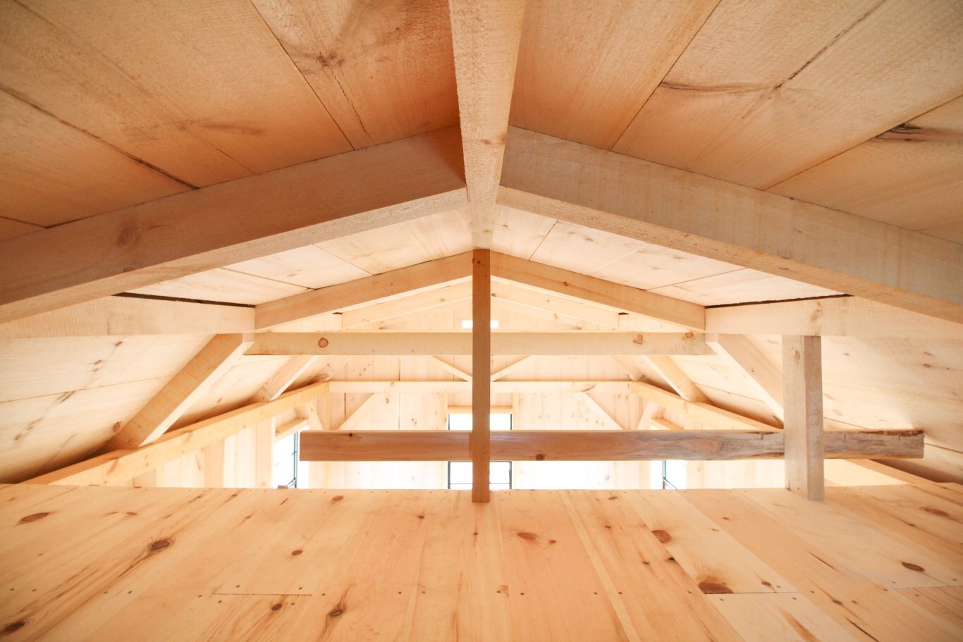 Ceiling lined in rough-sawn pine