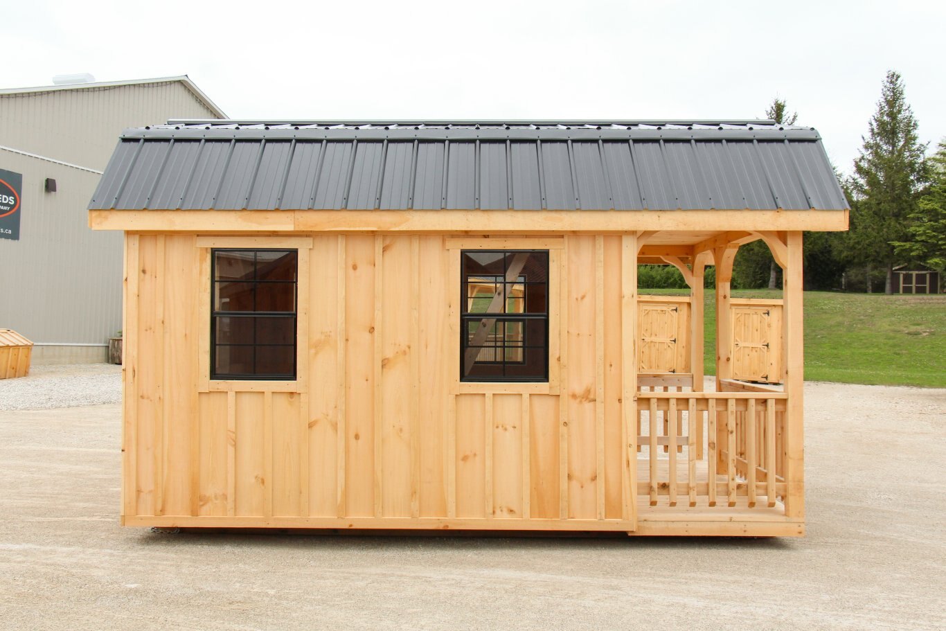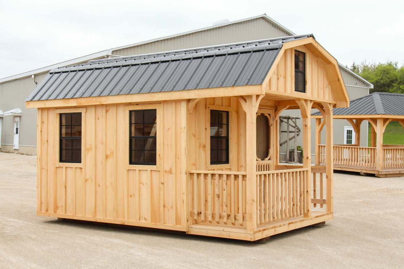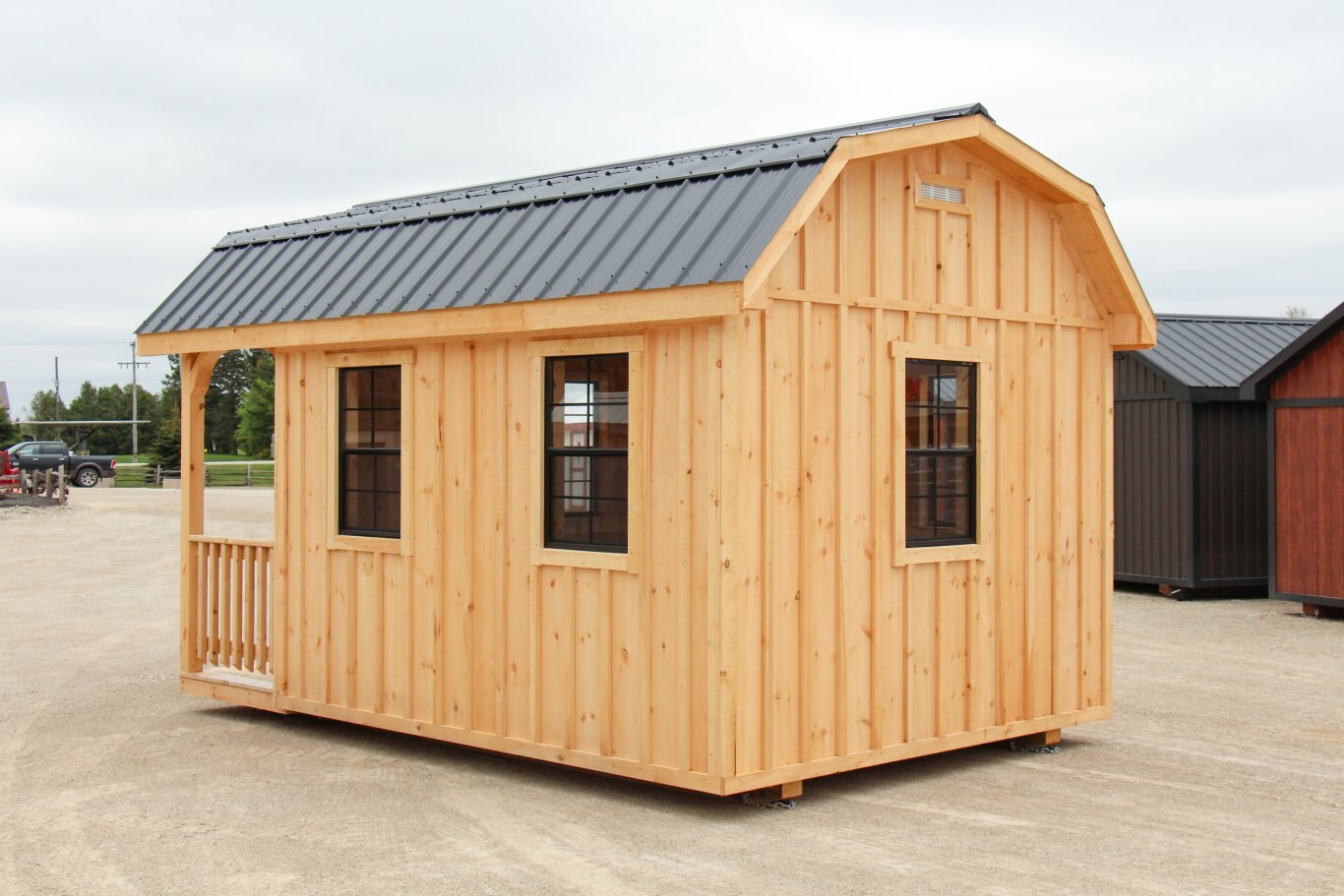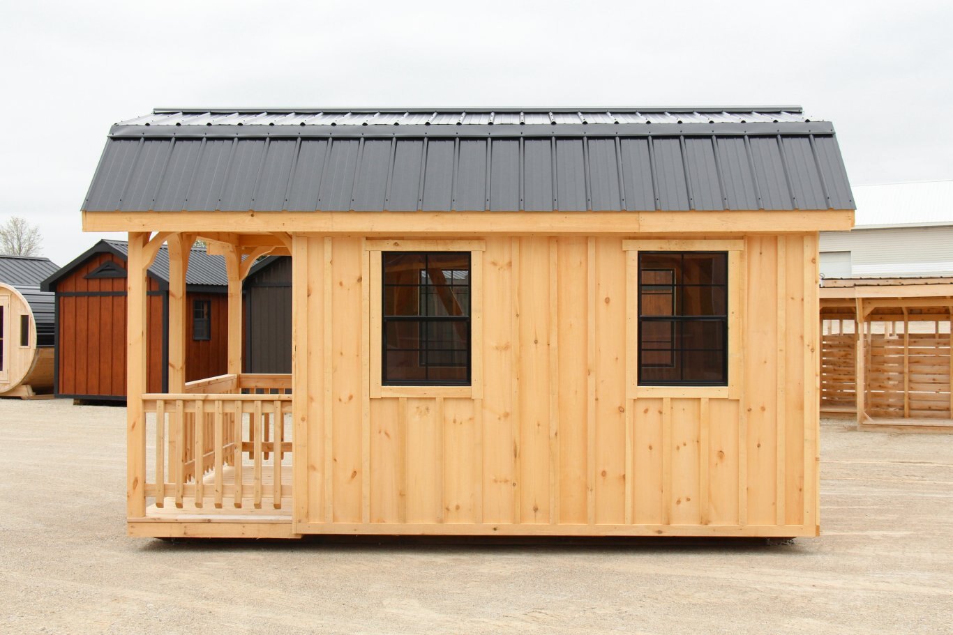 10' x 16' Hip Roof Bunkie with porch & railing