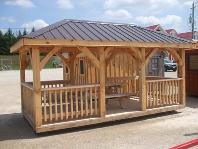 8' x 12' Screened Room with Black Metal Roof, Stained ...